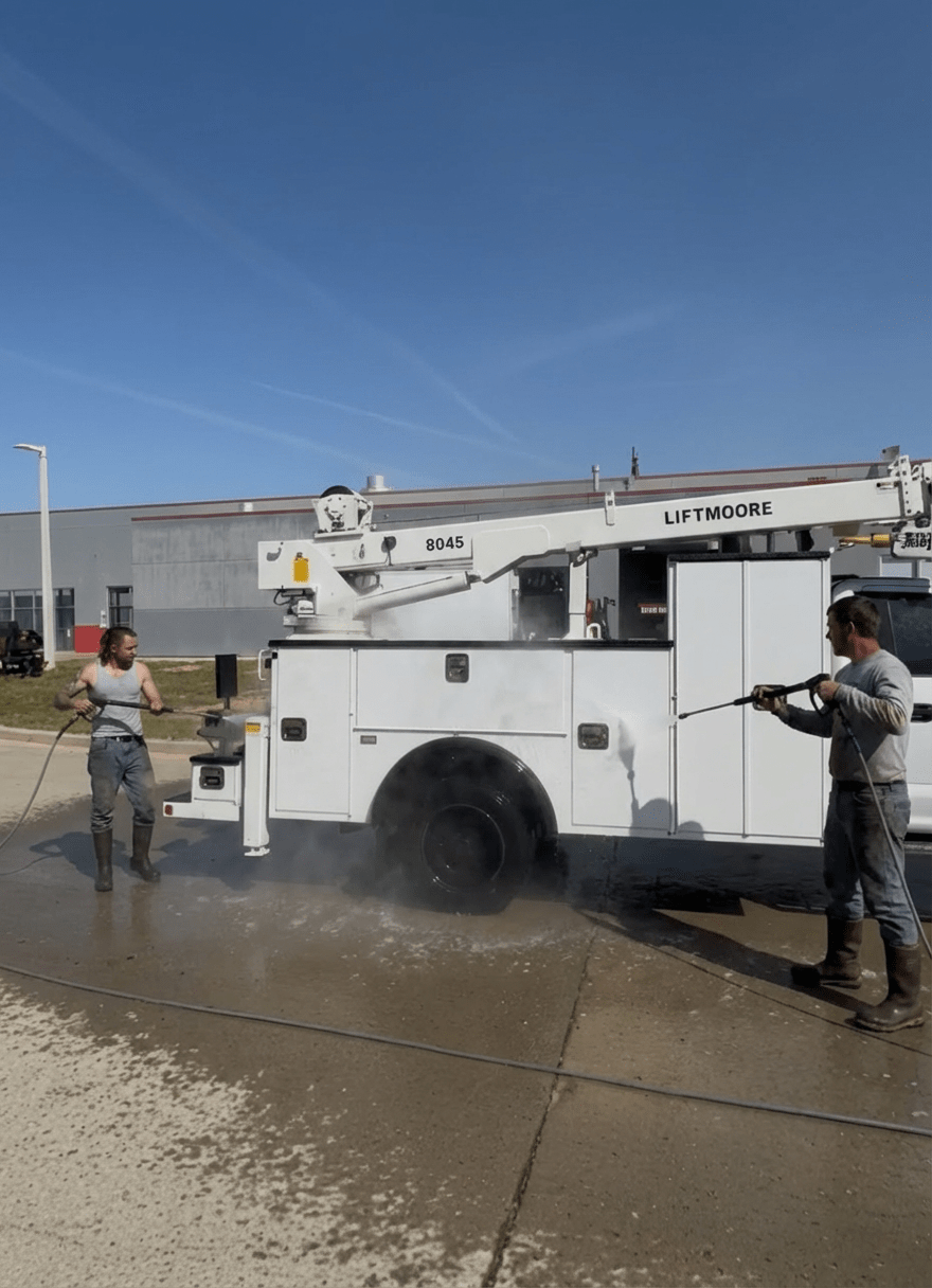 Deep cleaning for flatbed trucks removing debris and buildup, leaving a clean, professional look.